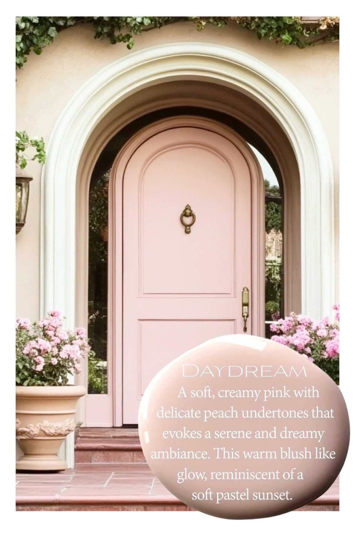Wise Owl Paint’s Daydream is a soft, creamy pink with delicate peach undertones, evoking a serene and dreamy ambiance. This gentle hue carries a warm, blush-like glow, reminiscent of a soft sunrise or a fleeting pastel cloud making it a soothing and inviting color for any space.
